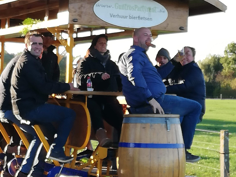Tout le monde pédale! L'animation the Beer-Cycle vous propose différentes boissons: de la bière (Jupiler), du cava ou même des softs selon les envies. Ambiance garantie!