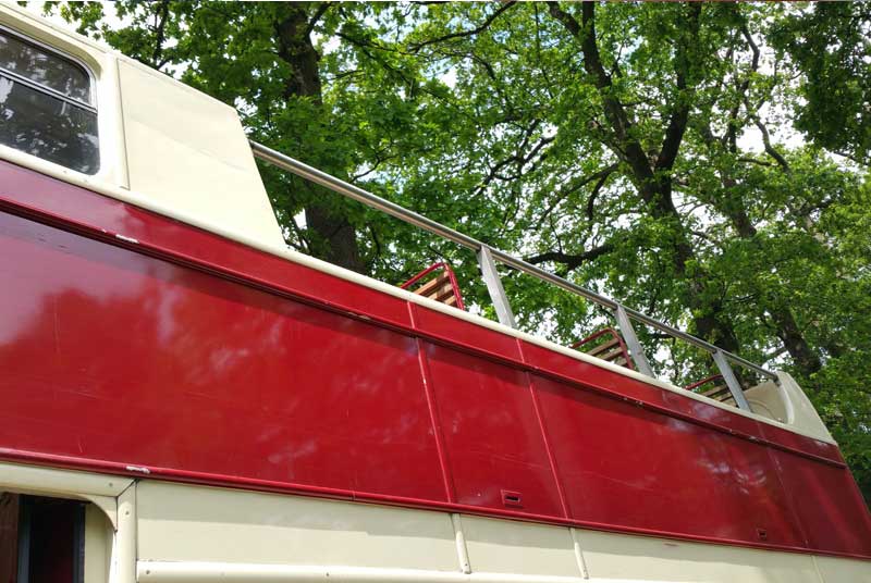 Ce bus nostalgique anglais imperial de 1951 avec entrée ouverte à l’arrière, peut accueillir 51 personnes.