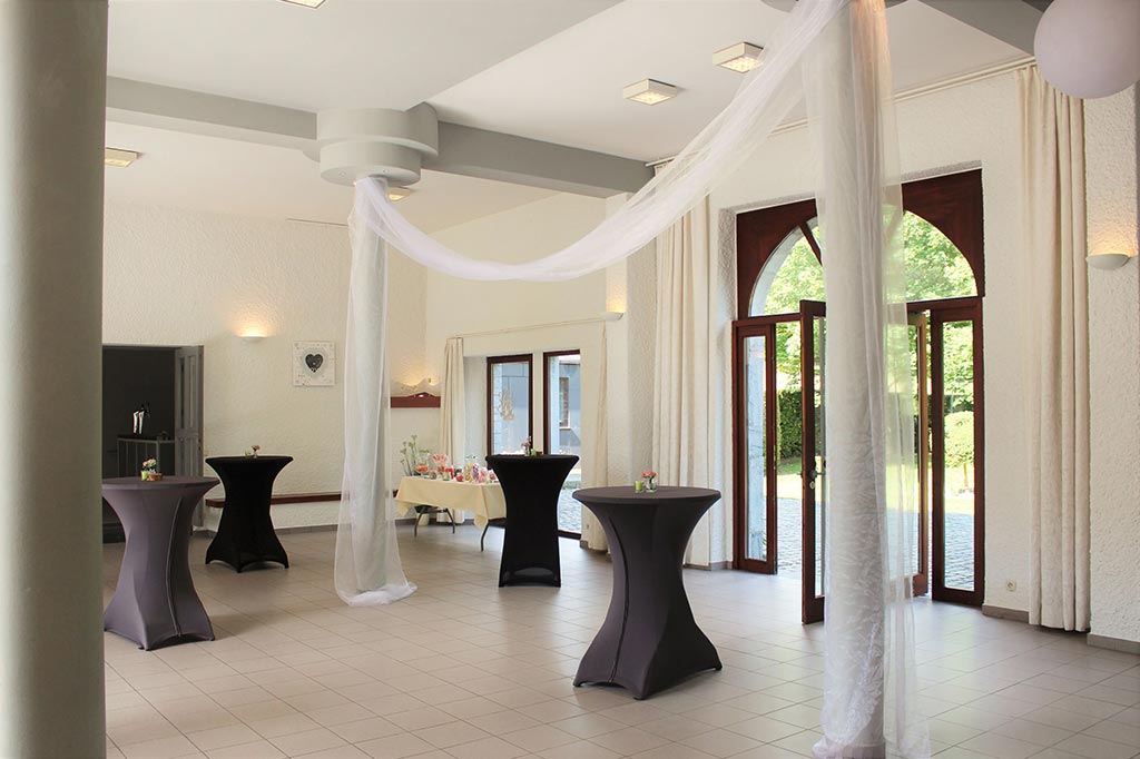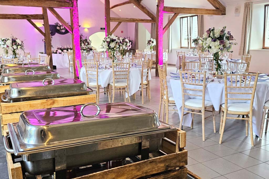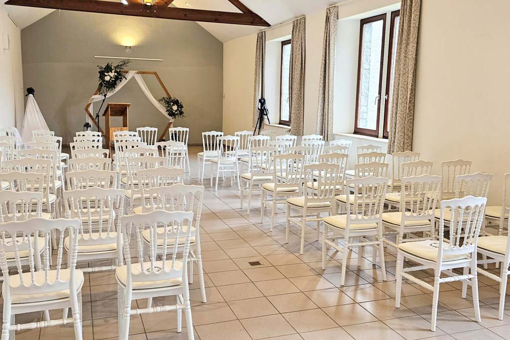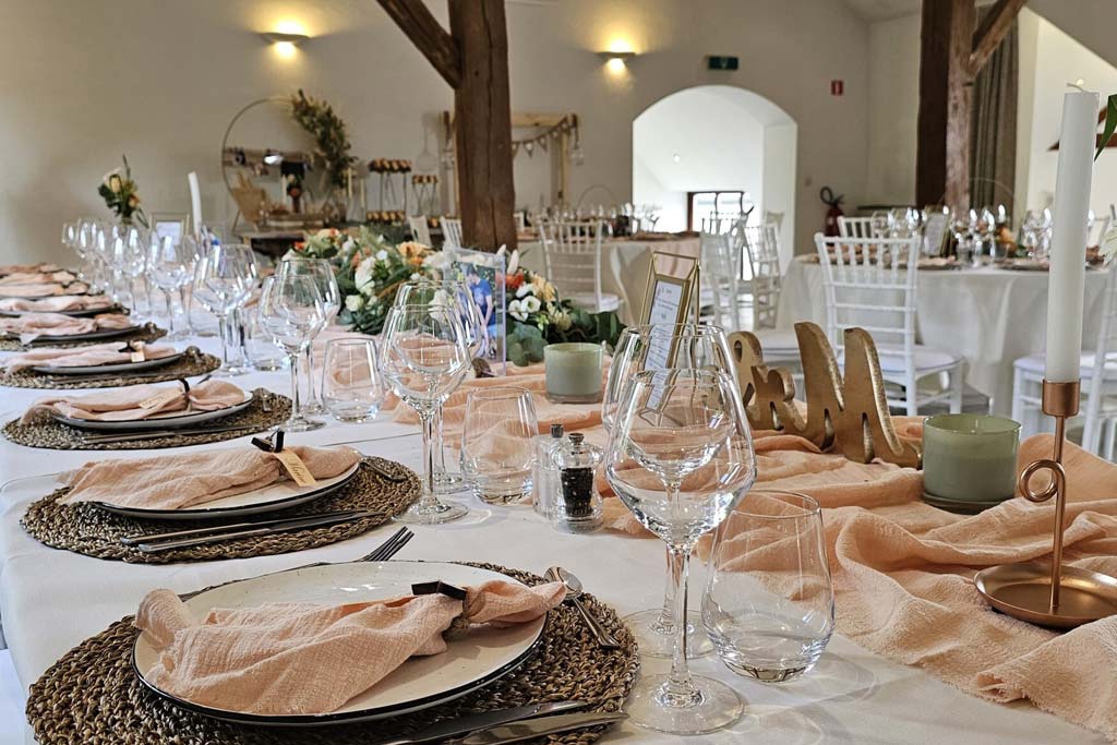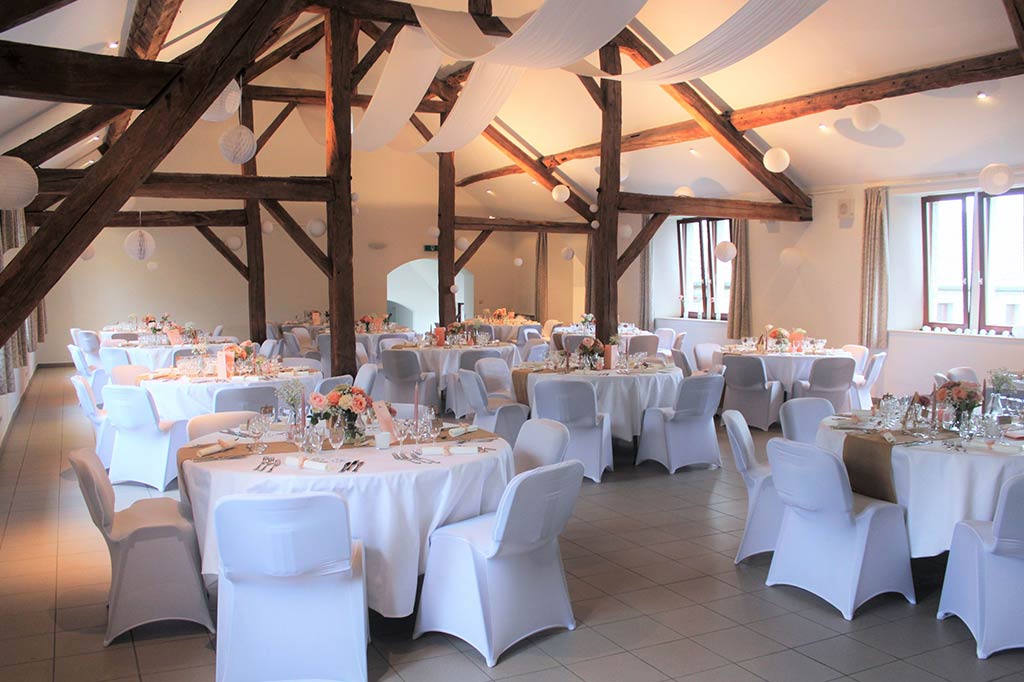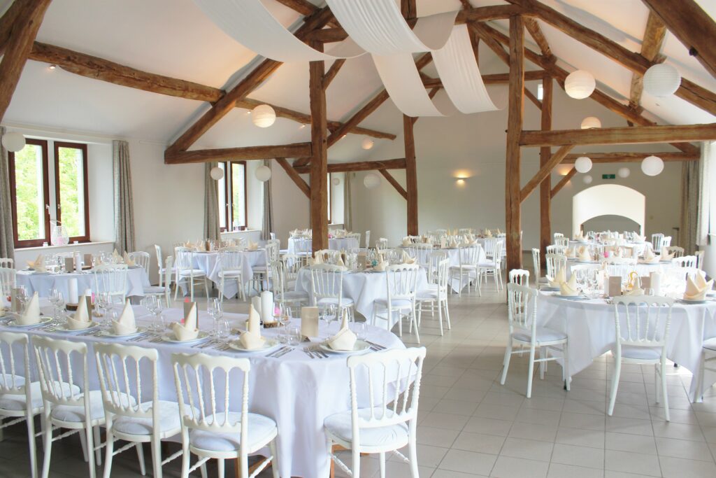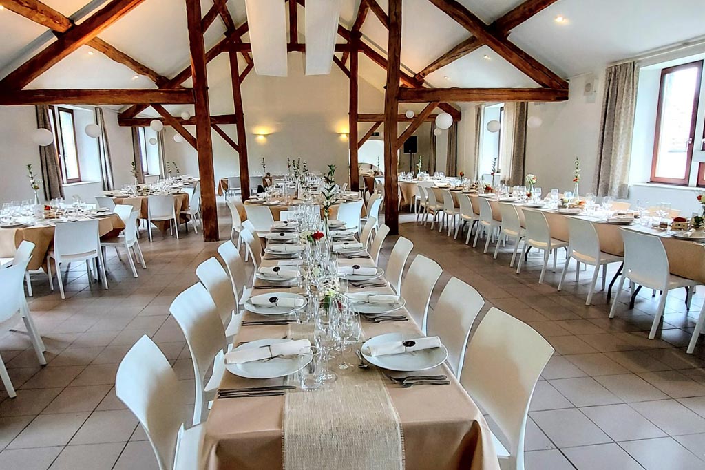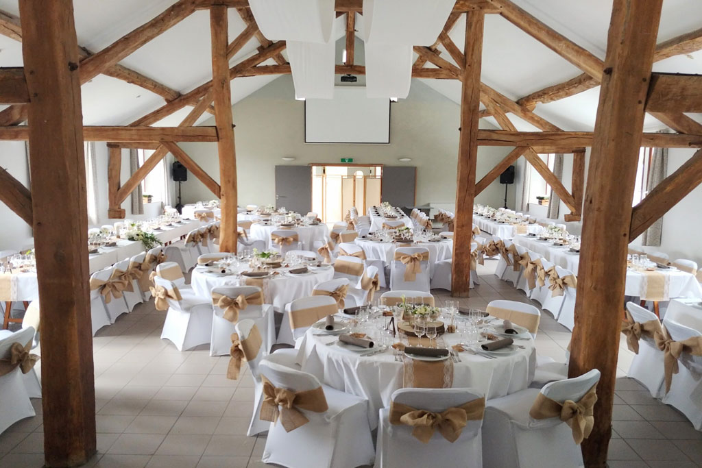 La structure,  pleine d’authenticité avec ses moellons de pierre et ses imposantes poutres en chêne, se veut d’abord fonctionnelle pour faciliter l’organisation de vos événements.