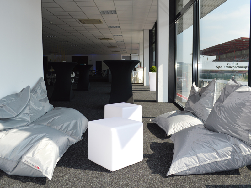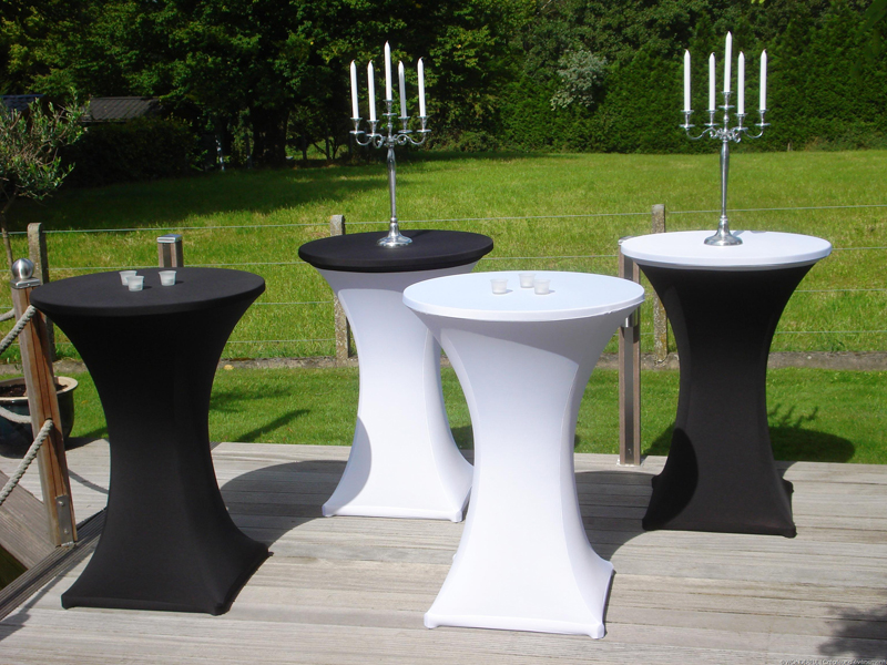 Manges debout & nappes en stretch, poufs géants, chandeliers, …